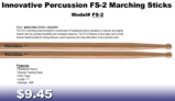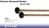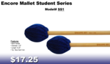 | B.) | •Encore SS1Blue Yarn Hard Marimba, Xylophone, & Aux Percussion •Encore 103B/93R 1″ Oval Hard Rubber, Marimba, Xylophone, Aux Percussion, & 1.25" head •Vic Firth 5A Drumsticks •Slender Stick Bag Blk - 4" x 19" | $45.99 |