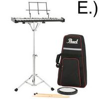 | E.) | Pearl PK910 Percussion •2.5 Octave Bells (F5~C8) • Mallets w/25mm Heads & Wood Handles • 8" Tuneable Practice Pad • PKB-32 Bell & Pad Stand • Snare Drum Sticks • Music Rack • Nylon Backpack-Style Carrying Case | $20.99* |